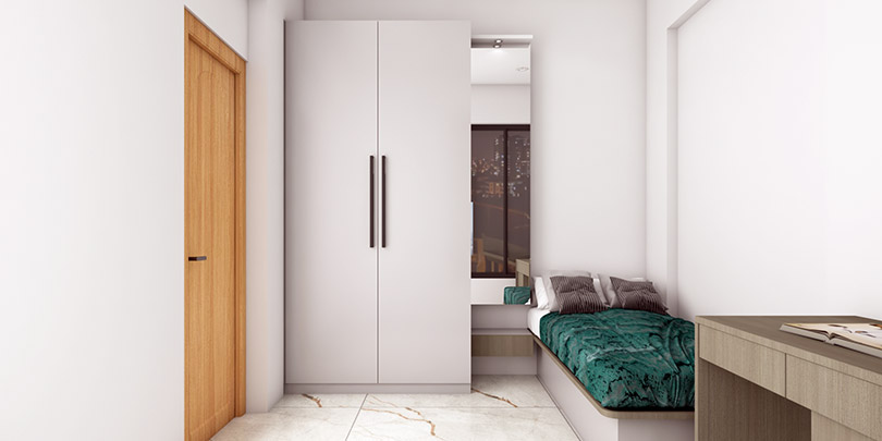 Bedroom Interiors Compact wardrobes, hydraulic beds, vanity units, and sliding door designs to make your bedroom cozy yet clutter-free.