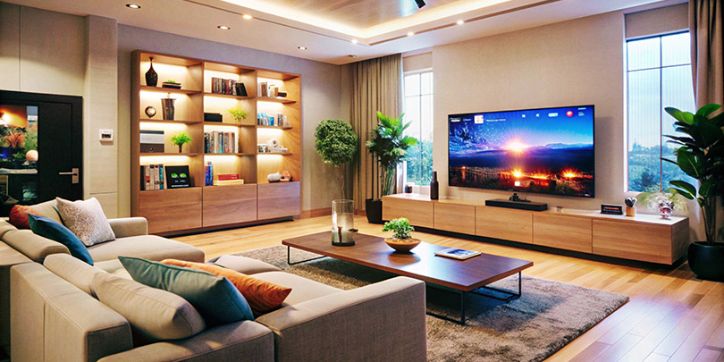 Contemporary Living Room with Minimalist TV Unit and Mood Lighting