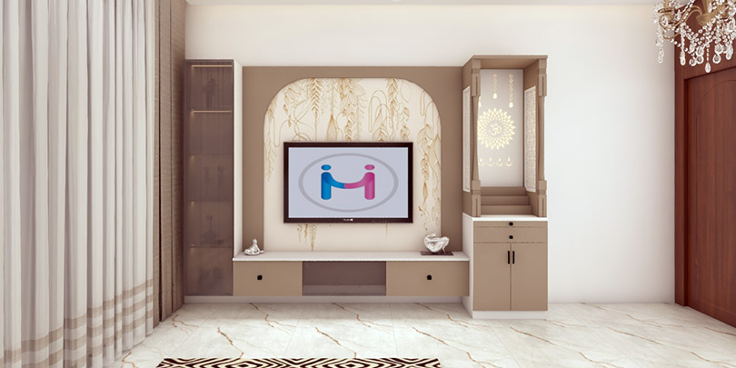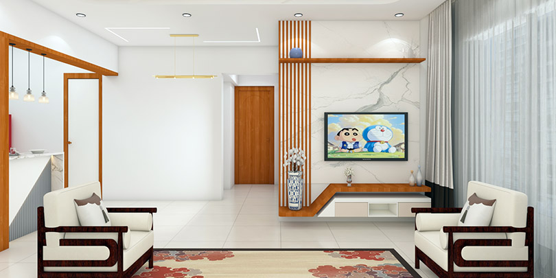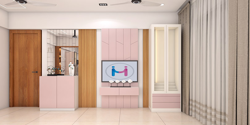 Custom TV Unit and Wall Decor in a 1BHK Living Room That Elevates Everyday Living