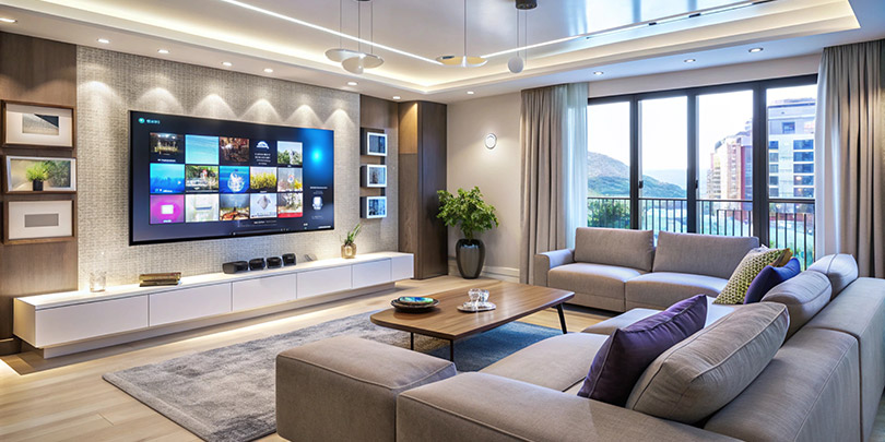 Contemporary Living Room with Minimalist TV Unit and Mood Lighting