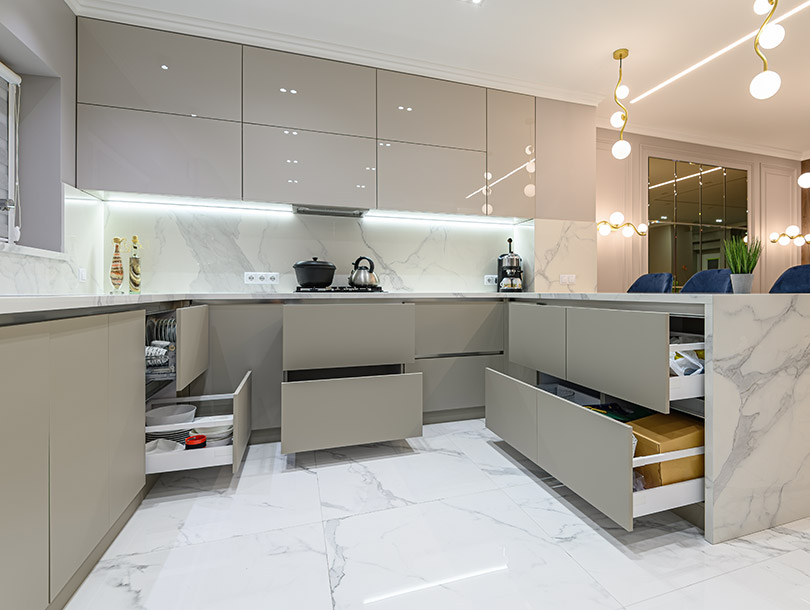 Premium European Standard Materials We use top-quality materials with soft-close fittings, moisture-resistant boards, and heat-tolerant finishes that stand the test of time.